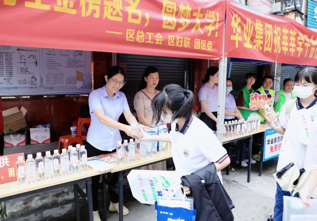6月7日上午,華業(yè)集團工會主席鐘麗霞率公司員工前往防城區(qū)各個考點布置愛心護考驛站,為考生及家長免費提供飲用水、紙巾、文具包、應急藥品等為高考加油助力。