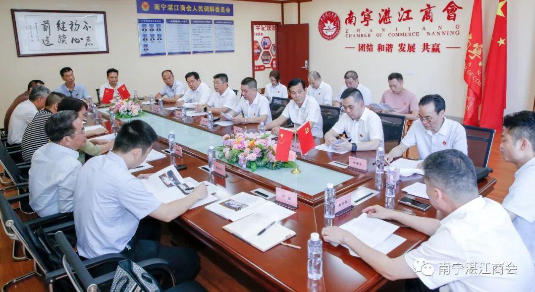 24日上午調(diào)研組在商會(huì)會(huì)議室召開座談會(huì),南寧湛江商會(huì)會(huì)長楊志恒、黨支部書記謝勝佳、名譽(yù)會(huì)長寧波、執(zhí)行會(huì)長龍其生、楊忠華、彭康勝、理事長李志強(qiáng)、監(jiān)事長黃水旺、常務(wù)副會(huì)長林陽明、劉志宏及秘書處代表參加本次會(huì)議。會(huì)議由湛江市委統(tǒng)戰(zhàn)部副部長、市工商聯(lián)黨組書記陳弘祖主持。