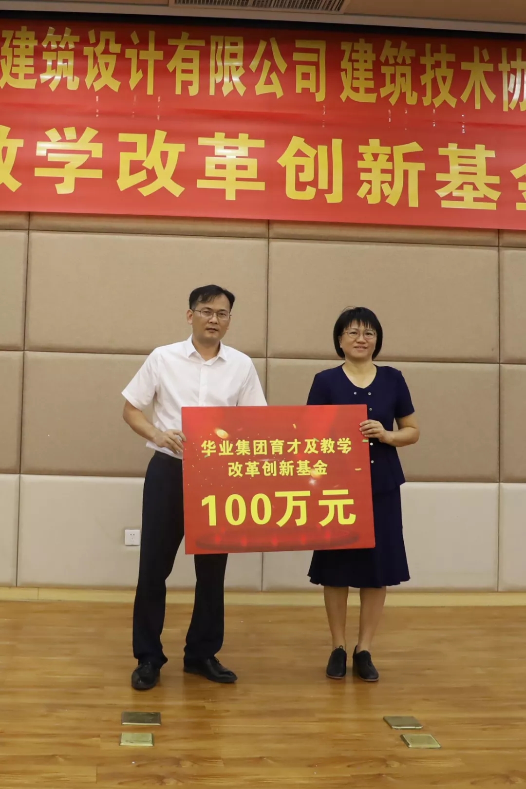 隨后,廖人興副總裁代表華業(yè)集團(tuán)向廣西建設(shè)職業(yè)技術(shù)學(xué)院捐贈(zèng)100萬元人民幣設(shè)立華業(yè)集團(tuán)育才及教學(xué)改革創(chuàng)新基金,廣西建設(shè)職業(yè)技術(shù)學(xué)院土木工程系主任姚琦代表學(xué)院接受捐贈(zèng),并對華業(yè)集團(tuán)慷慨解囊表示衷心感謝。華業(yè)集團(tuán)育才及教學(xué)改革創(chuàng)新基金的設(shè)立,充分體現(xiàn)了華業(yè)集團(tuán)對深入開展校企合作、精準(zhǔn)落實(shí)教育教學(xué)改革、培養(yǎng)專業(yè)型人才的堅(jiān)定決心和信心。